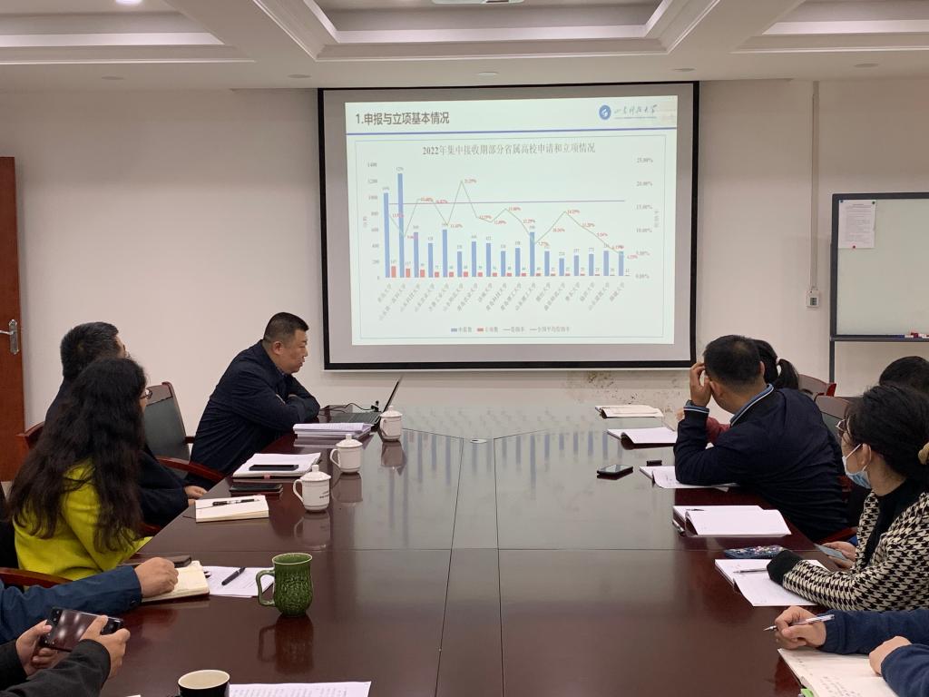 会上,赵健作了《国家自然科学基金申报工作分析报告》,从国家自然科学基金申报与立项基本情况、组织发动情况、存在问题、下一步工作计划、新项目资金管理办法解读等五个方面,分析了全校2022年度国家自然科学基金申报和获批情况。