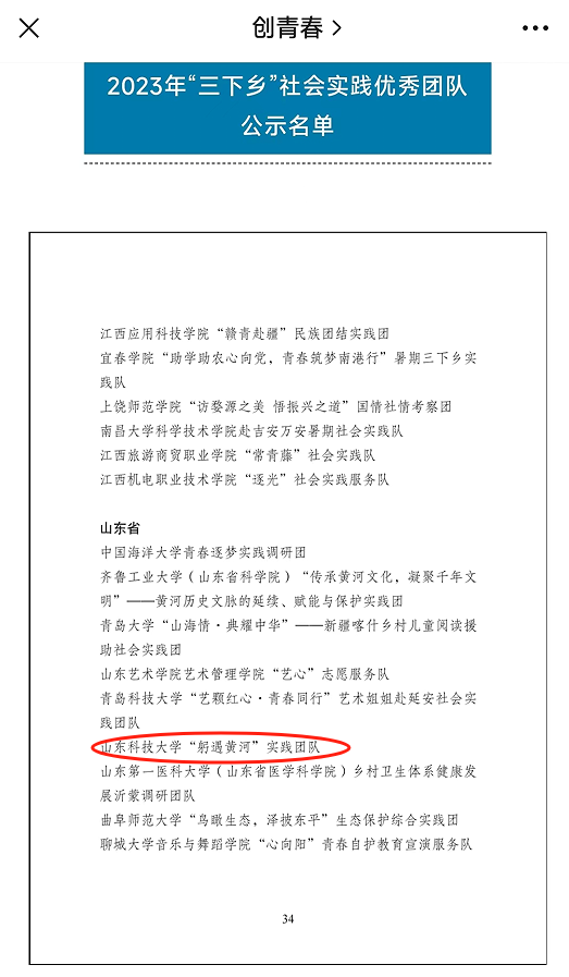 点击:2023年全国大中专学生志愿者暑期文化科技卫生“三下乡”社会实践活动评审结果公布,我院“躬遇黄河”社会实践团队被评为全国“三下乡”社会实践优秀团队。